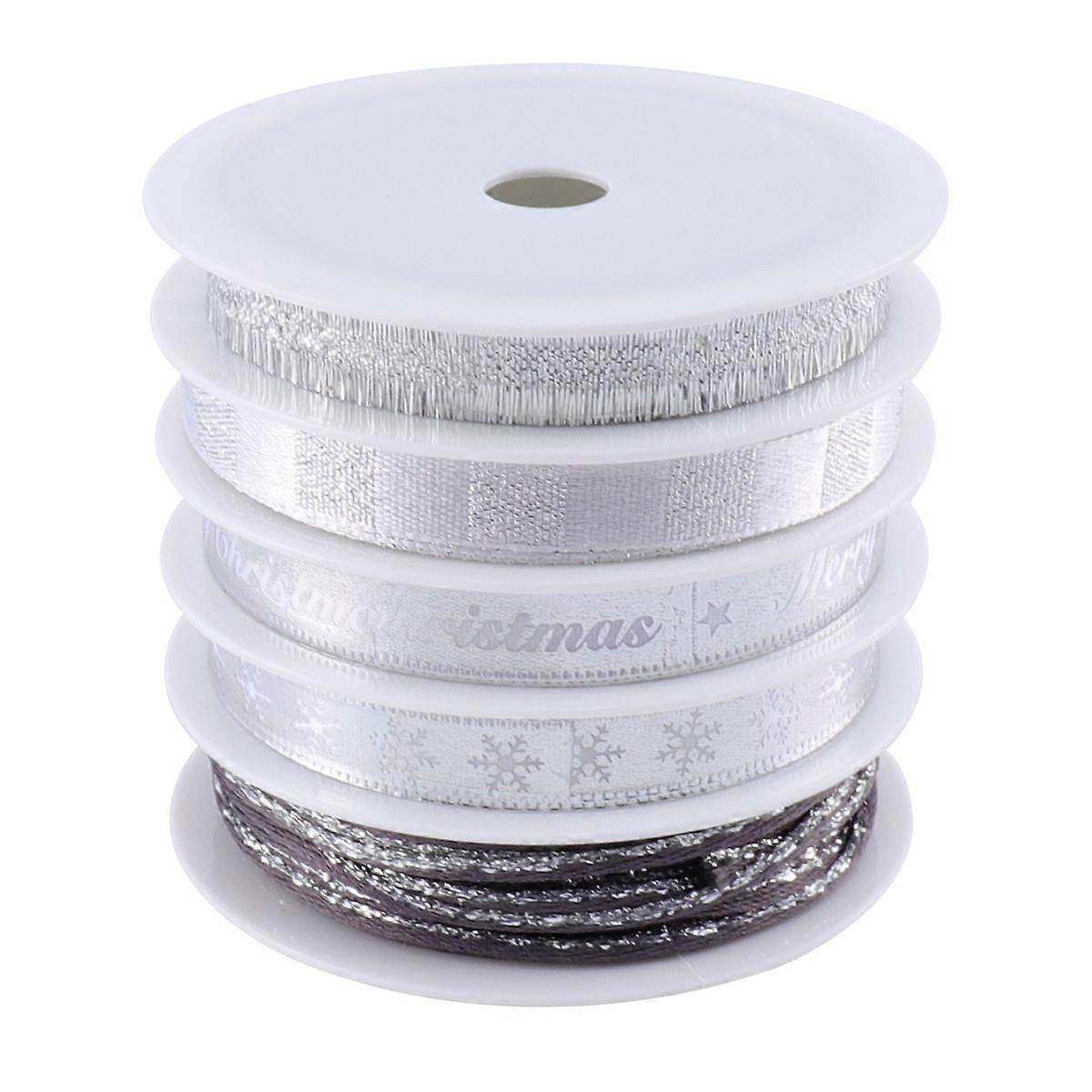 5 Rolls of 25m Length Christmas Printed Ribbon Holiday Gift Decorative Band Ribbon for Wrapping DIY Crafts(Silver)