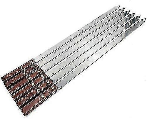 50cm Long Bbq Barbecue Skewers, Wooden Handel Set Of 8 Bbq Skewers Flat Reusable Metal Skewer Sticks For Bbq Party