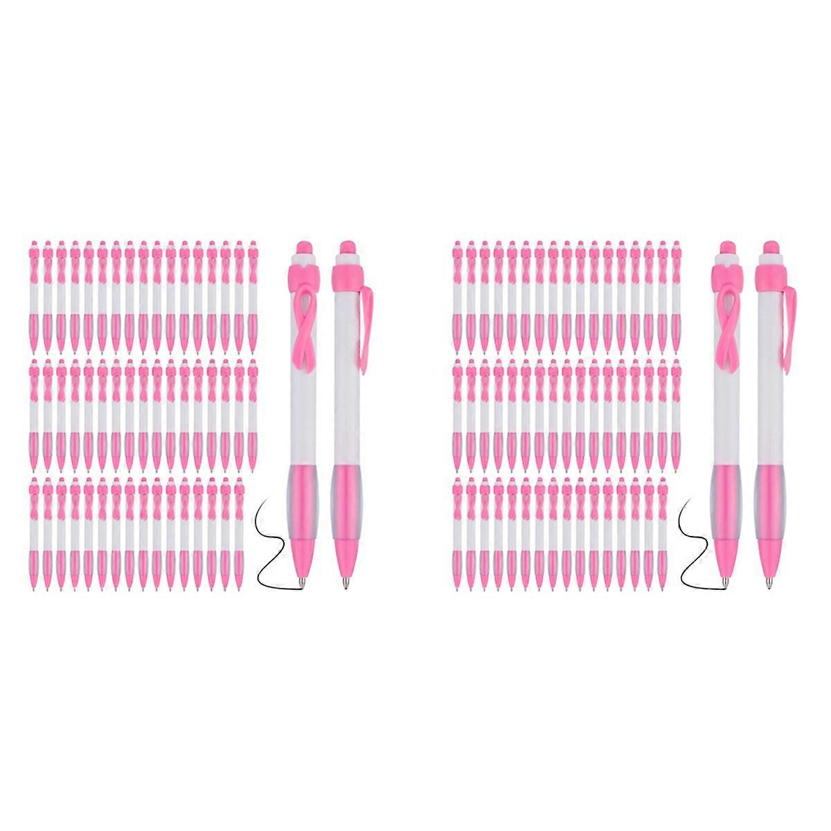 50 Pcs Pink Ribbon Pens Bulk, Black Ink Retractable Ballpoint Pens