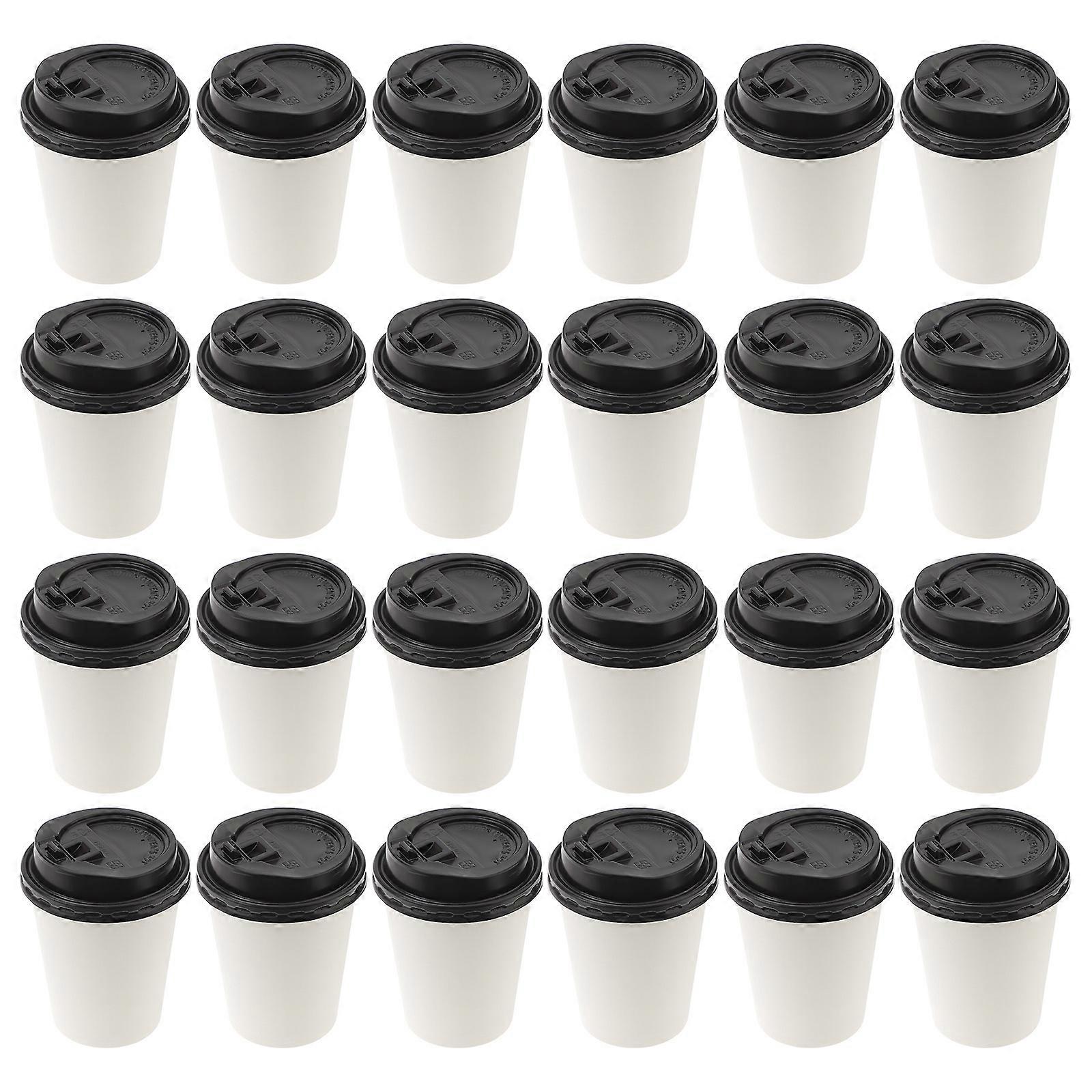50pcs Disposable Coffee Cups Insulation Takeaway Paper Cup with Lid (8oz, 280ml)