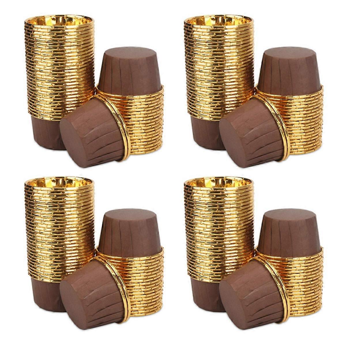 50Pcs Aluminum Foil Cupcake Cups Disposable Baking Cups-Gold + Brown