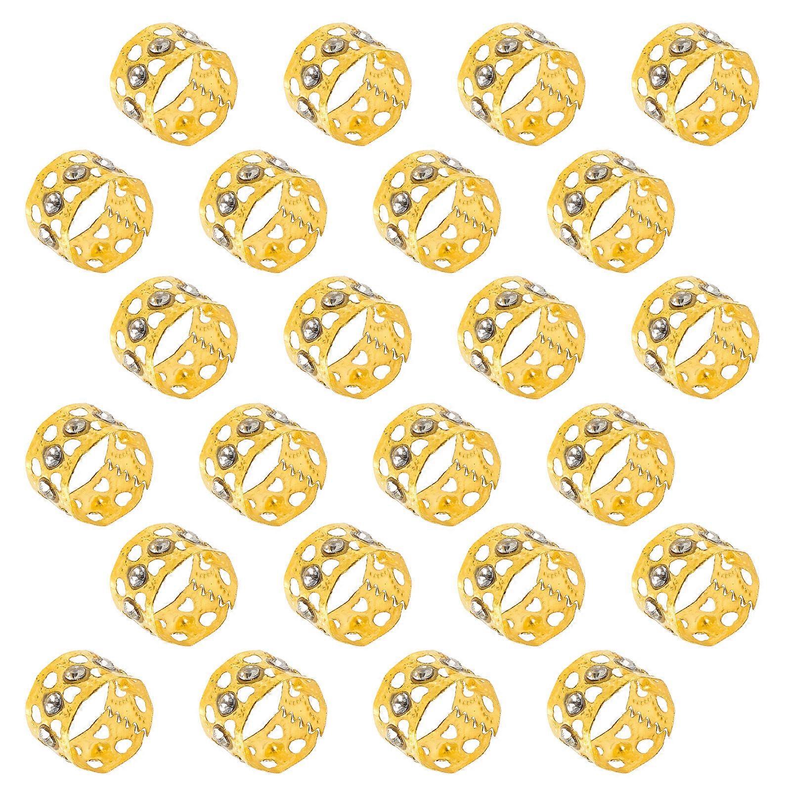 50pcs Golden Metal Hair Rings for Decor Durable Hollow-out Rhinestone Design Jewelry Accessories