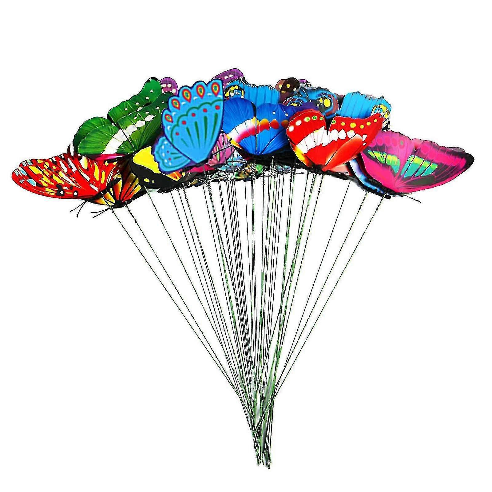 50 Pcs Stick Butterfly 3d Simulation Butterfly Single Layer Butterfly Stick Pvc Party Garden Outdoor Decoration