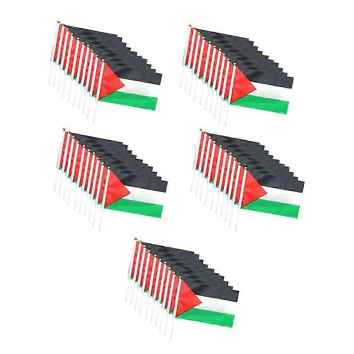 50Pcs Palestine Flag Small with Pole, 14X21cm Palestine Hand Waving Flag - Double Sided Fine Handhel