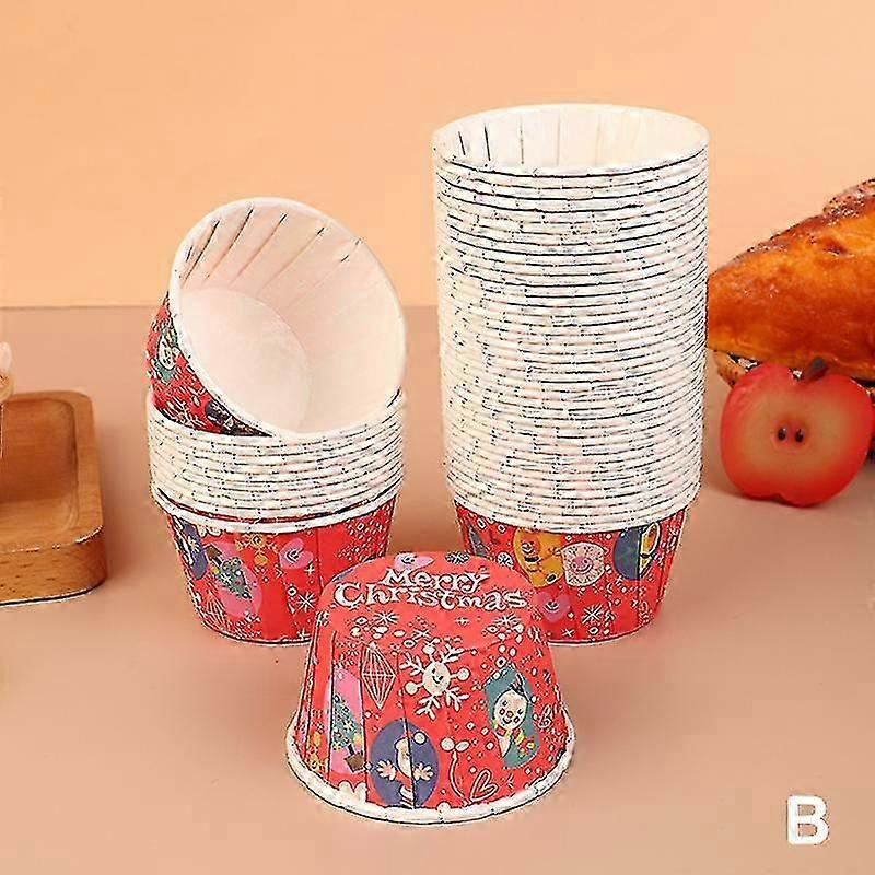 50pcs Christmas Cupcake Santa Snowman Pattern Muffin Cupcakes Liner Paper Cups