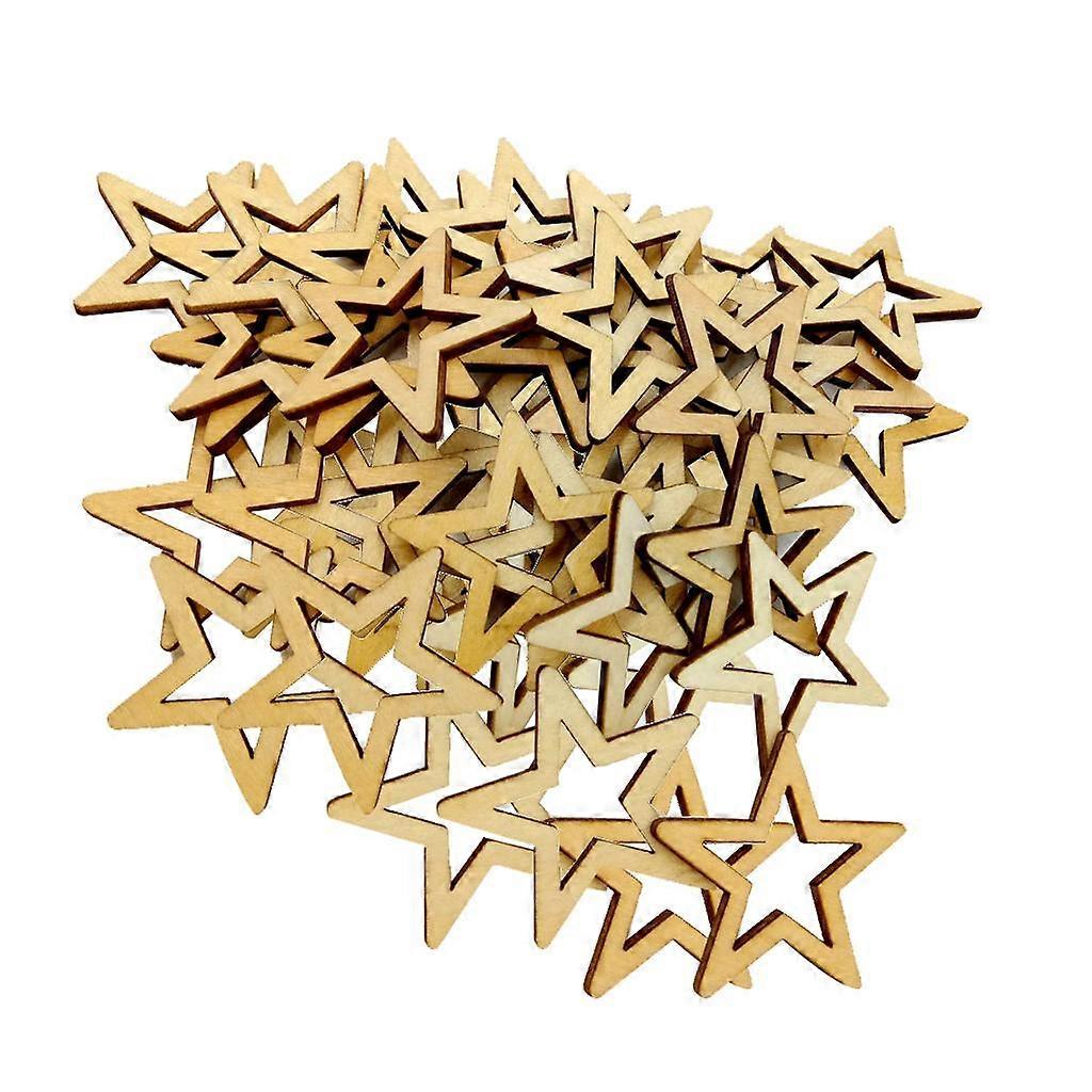 50pcs Unfinished Hollow Star Shape Wooden Embellishments 30mm
