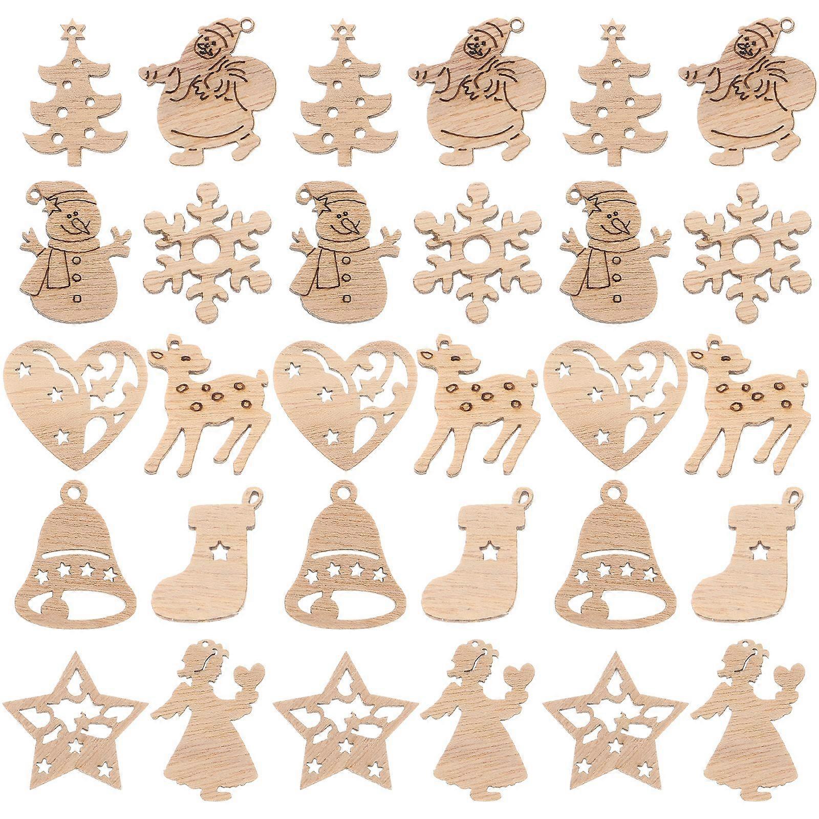 50pcs Cartoon Wooden Pieces Cutouts Craft Embellishments Wood Ornament Christmas Pendant for DIY Art Home Decoration (Random Pattern)