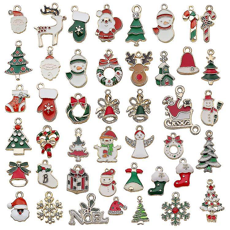 50 Pieces Pendant Charms Christmas Charms, Mini Christmas Pendant Charms, Christmas Charm For Diy Jewelry Making, Bracelets, Earrings, Jewelry Craft C