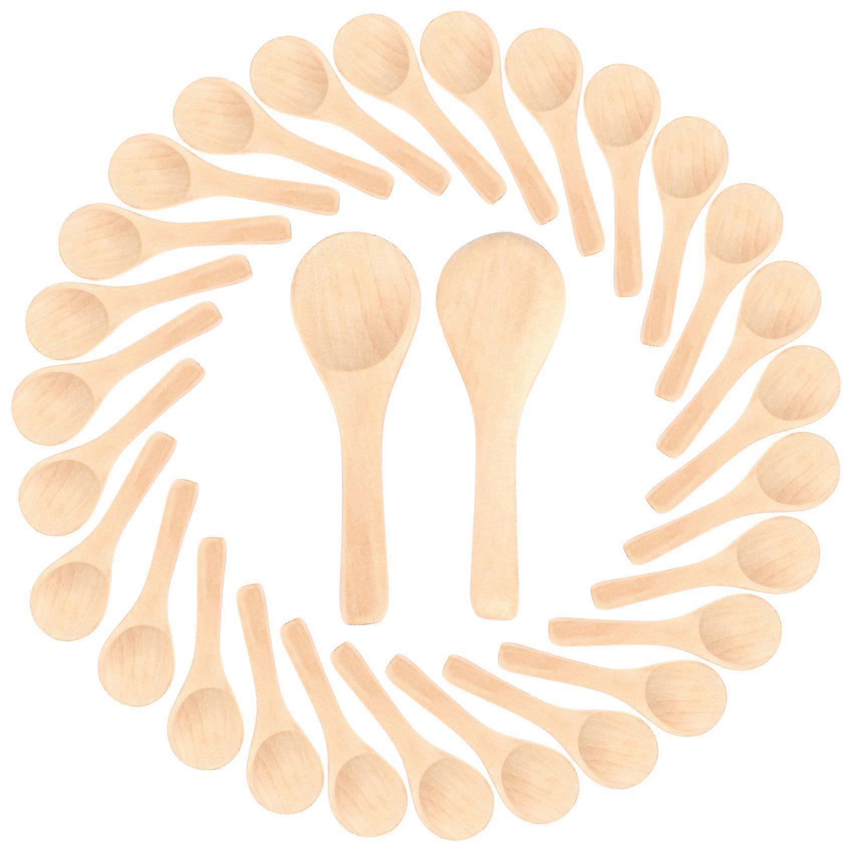 sufficient quantity to meet your needs, you can also share with your friends, relatives, family members and so on Practical cooking tool:Our mini nature spoons are practical to use in your kitchen, you can use them to mix batters, , frosting, honey, jam, salt, sugar, ice cream or hold other condiments, let you more convenient food . Easy to use and clean:The wood honey teaspoon is easy to use and take due to the design. It's also easy to clean and you just need to wash them by water and then wipe them with a rag. Multi :Our small wooden spoons can be applied for many functions, you can drink coffee, tea, milk by these spoons. You can also decorate your tableware with them when you hold party or have picnics, get a different and simple style. colour:Light Brown Material:Wooden size:. 3.5 x 1.1 inches/ 9 x 2.8 cm Package Contents: 50 *Wooden Spoons Only the above package content, other products are not included. Note: Light and different displays may cause the color of the item in the picture a little different from the real thing. The measurement allowed error is +/- 1-3cm.