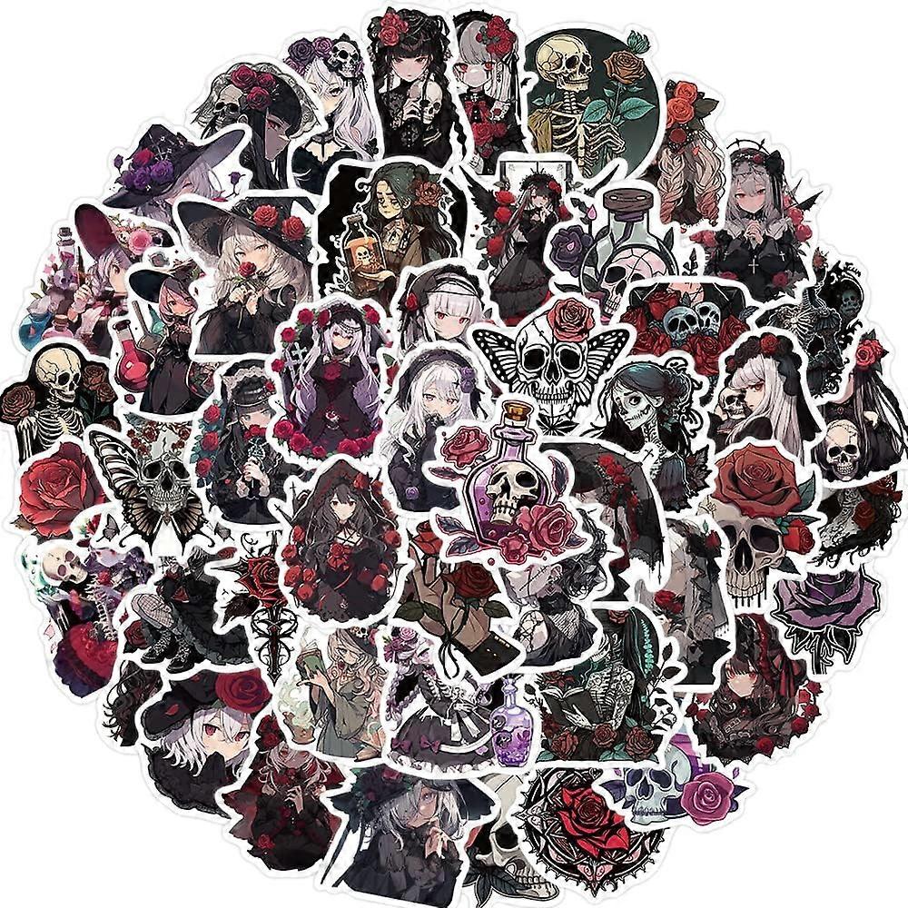 50 Pcs Gothic Stickers, Black and White Skull Stickers for Water Bottle, Laptop, Skateboard