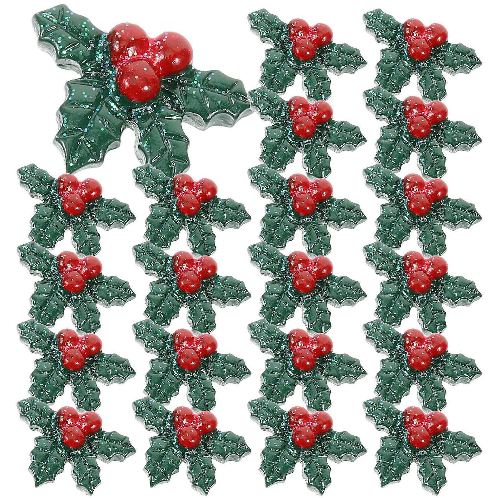 50Pcs Resin Holly Leaves Berries Charms Resin Embellishments Xmas Trees Wreath Crafts Ornaments