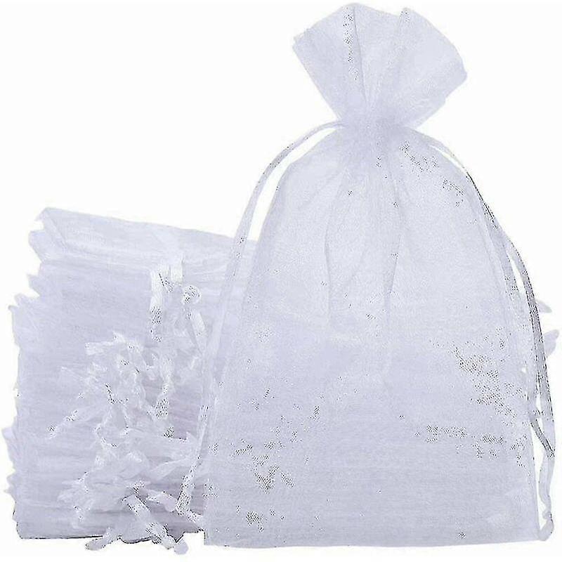 50pcs 20x30cm Organza Jewelry Bags, Drawstring Gift Bags for Wedding Favors Christmas Birthday Party (White)