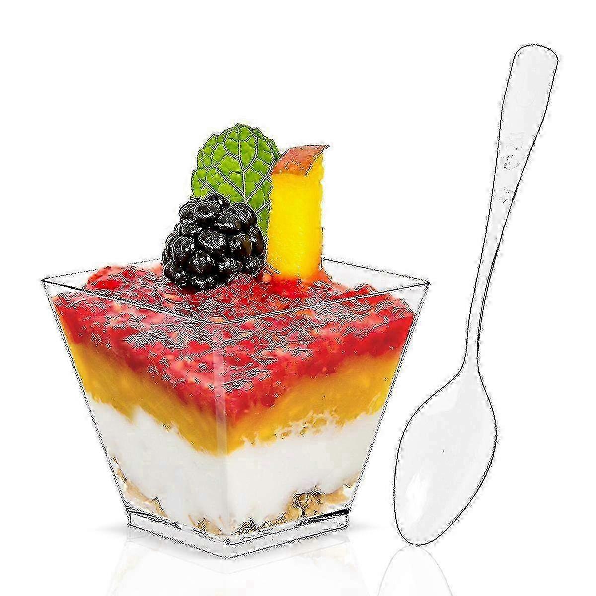 50pcs 60ml Disposable Plastic Transparent Dessert Cups with 9.5CM Spoons - Perfect for Cakes, Snacks & Party Treats