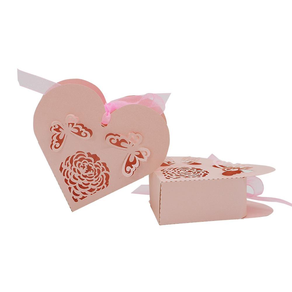 50pcs Heart Hollow Candy Boxes Ribbon Wedding Party Favors Pink