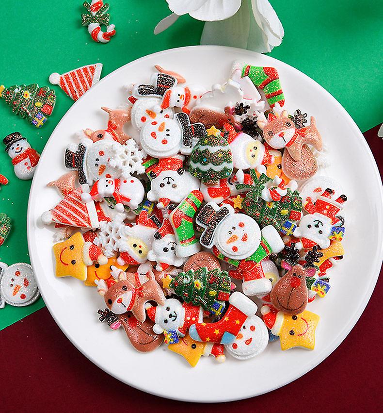 50pcs Christmas Diy Resin Miniatures Mobile Phone Case Refrigerator Stickers Handmade Figurines Holiday Greeting Card Stickers