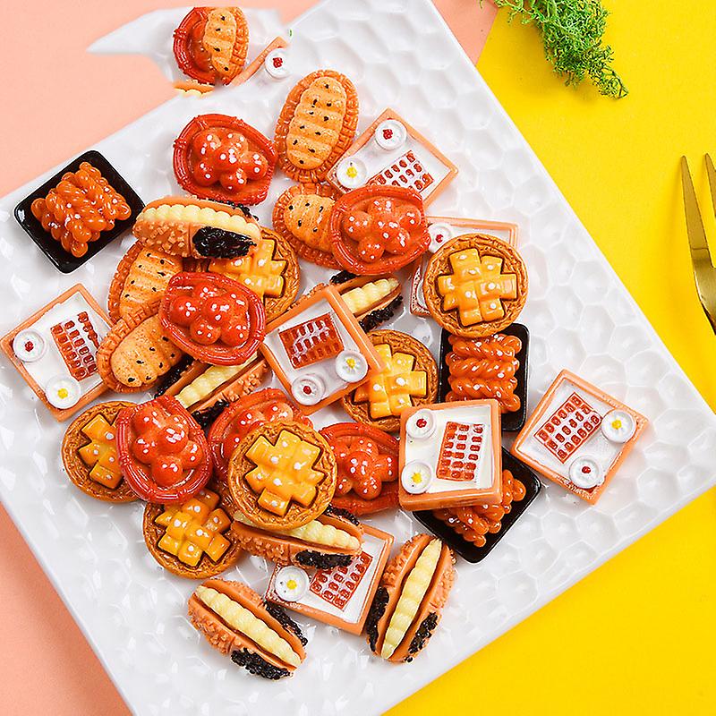 50pcs Cute Flatback Diy Mini Artificial Cake Bread Food Doughnut Beads Candy Bear Hotdog Resin Jewelry Beads Gifts Miniatures