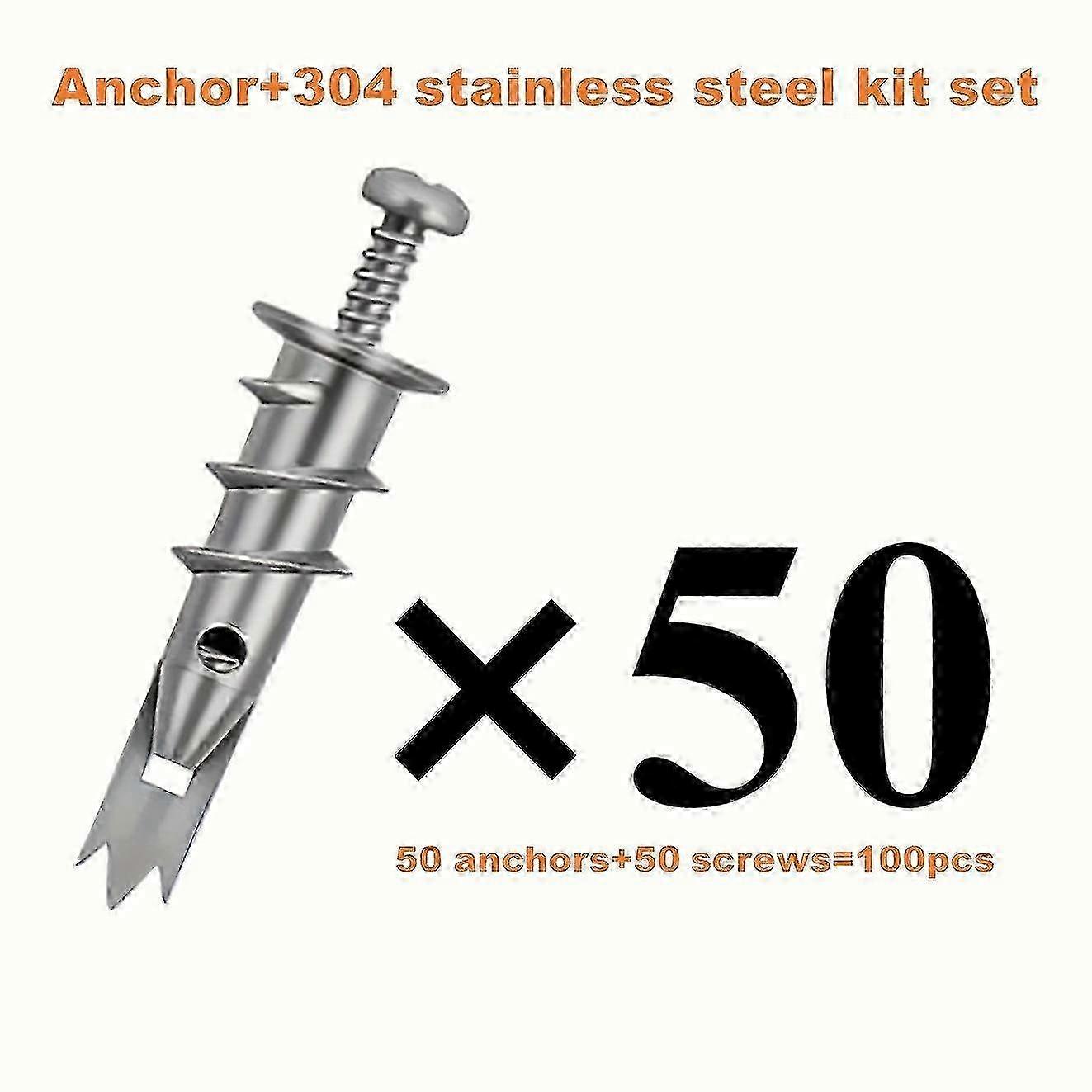 50/100 Piece Zinc Alloy Self-Drilling Drywall Anchor Set With Phillips Drive 304 Stainless Steel Screws - Rust Resistant