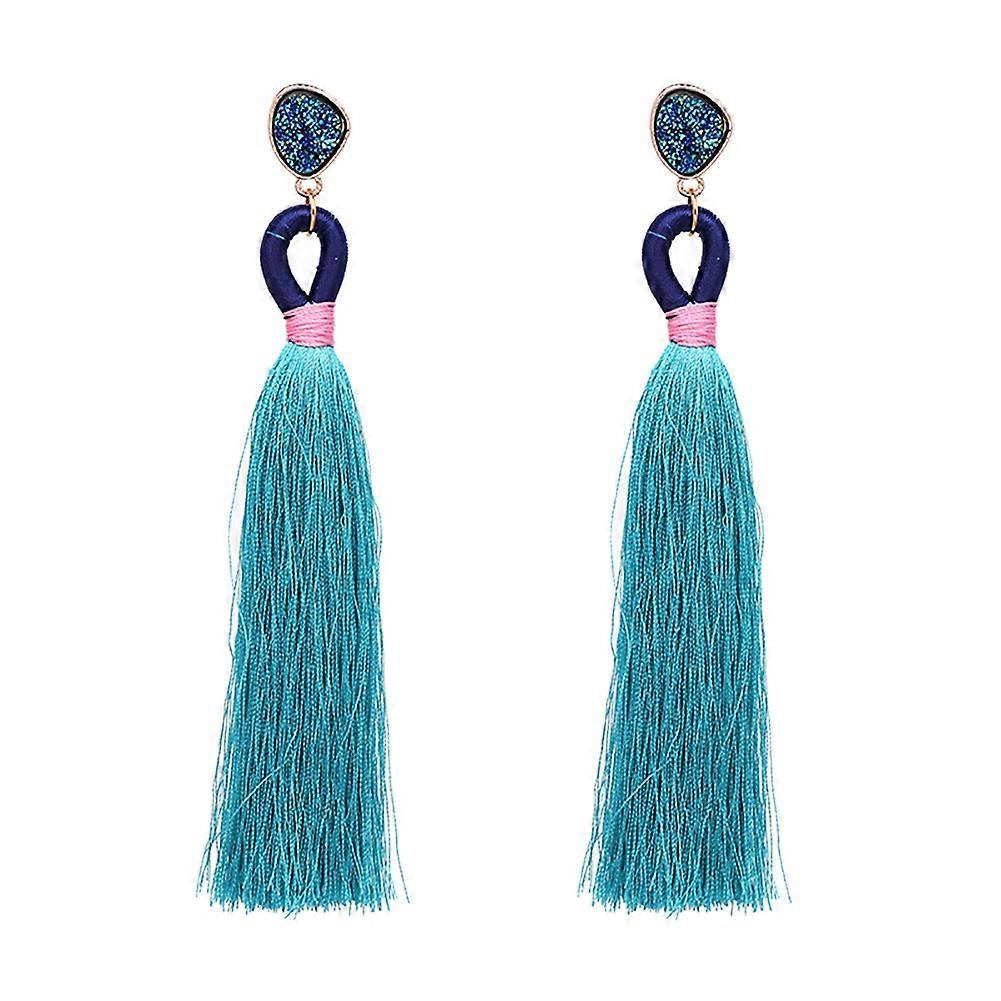 50348 Antique Simple Bronze Silk Tassels Earrings Charm Pendant Jewelry(Light Blue)
