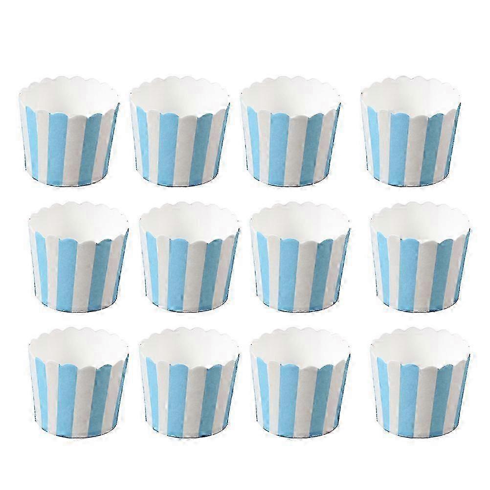 50PCS Blue and White Stripes Paper Cup Cupcake Wrappers Baking Packaging Cup Heat Resistant Cupcake Cups