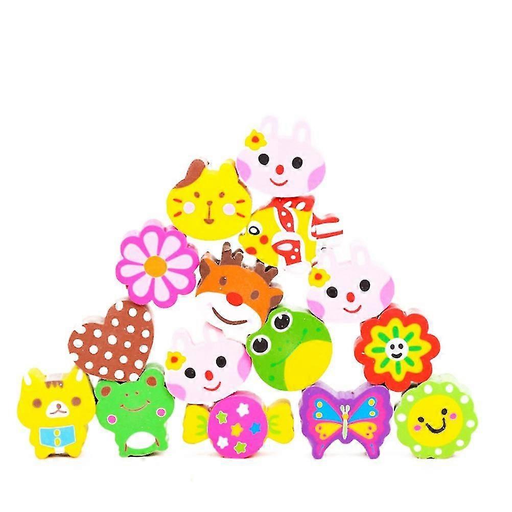 50pcs Students Rubber Erasers Cartoon Pencil Eraser Office School Stationery With Hollow Hole (mix Type)