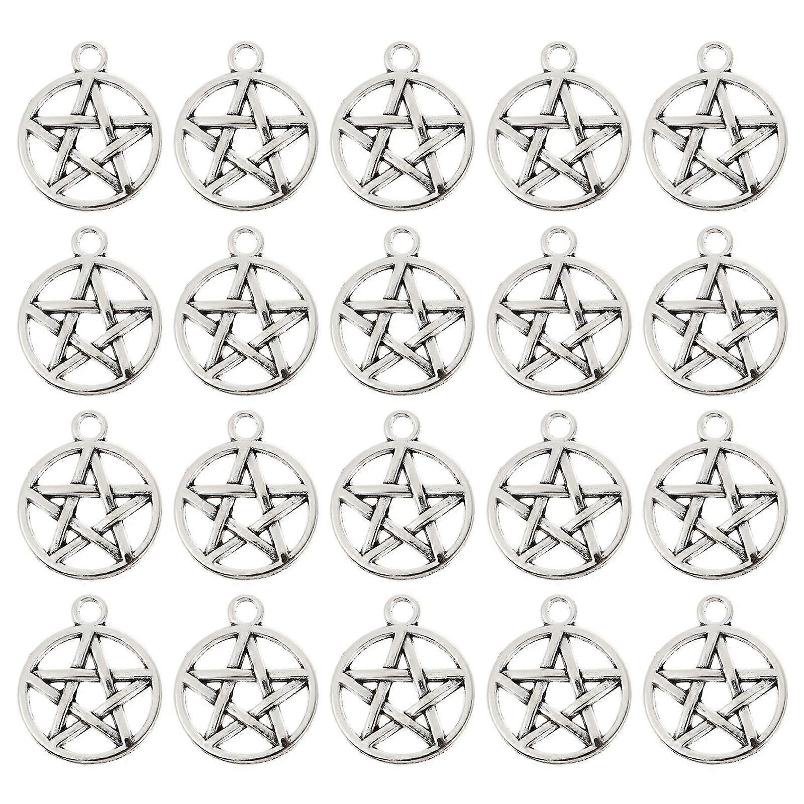 50PCS Silver Tone Pentagram Charms Pendants Unisex Pendant (Silver)