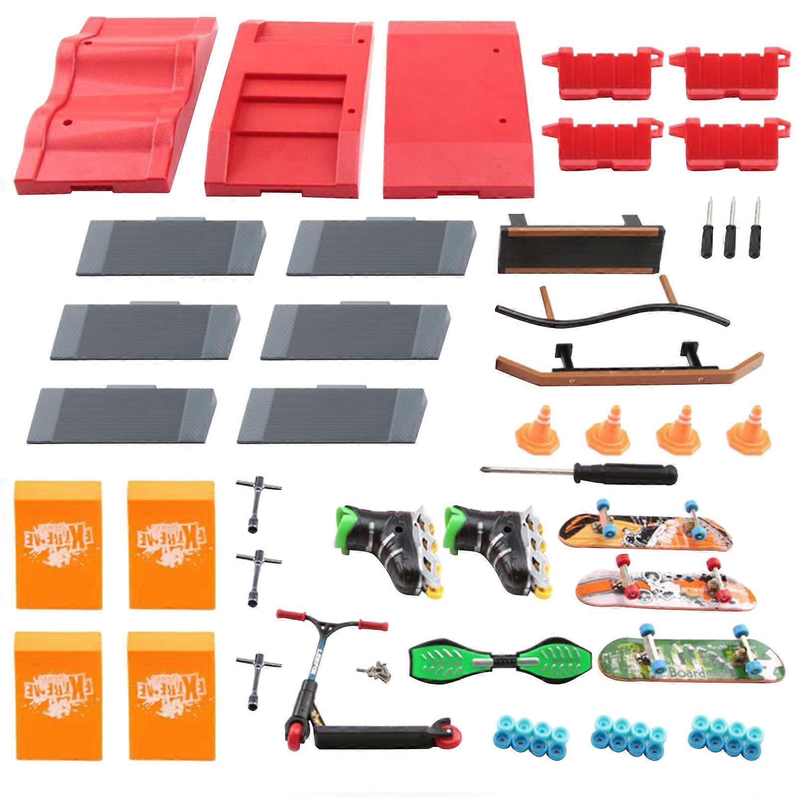 52pcs/set Finger Toy Set Mini Skateboard Professional Ramp Movement Freestyle Skate for Fingers Toy Table Skate Game