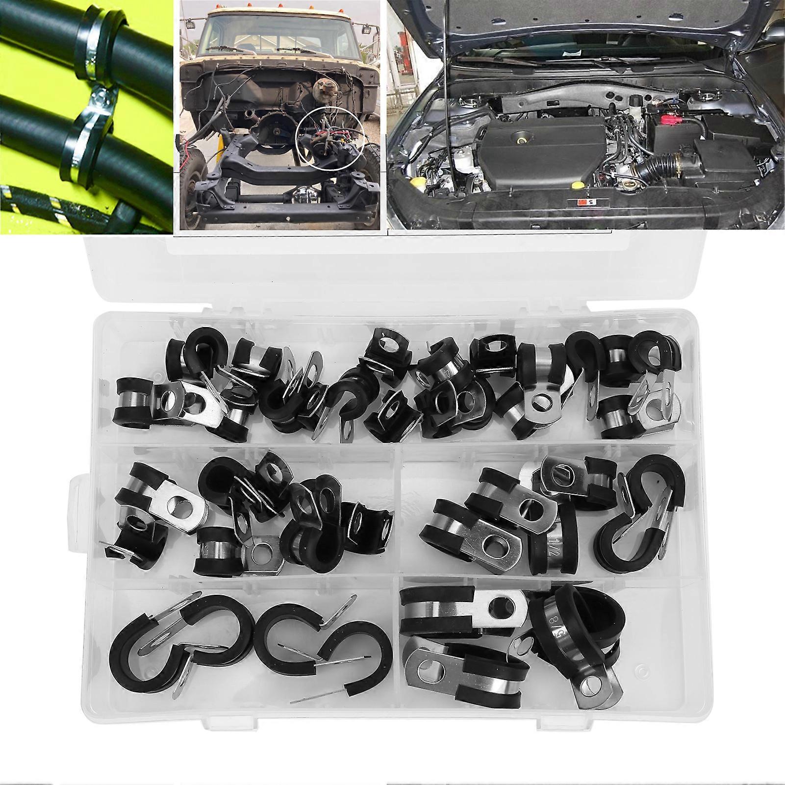 52pcs R-Type Pipe Clamp Assortment Kit Rubber Cushion Clips 5 Sizes 1/4in 3/8in 1/2in 5/8in 5/16in