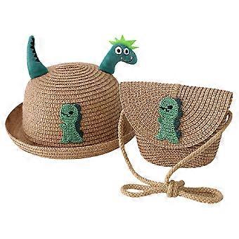 52-54cm hat circumference children's summer straw hat cartoon dinosaur sun hat and straw bag set
