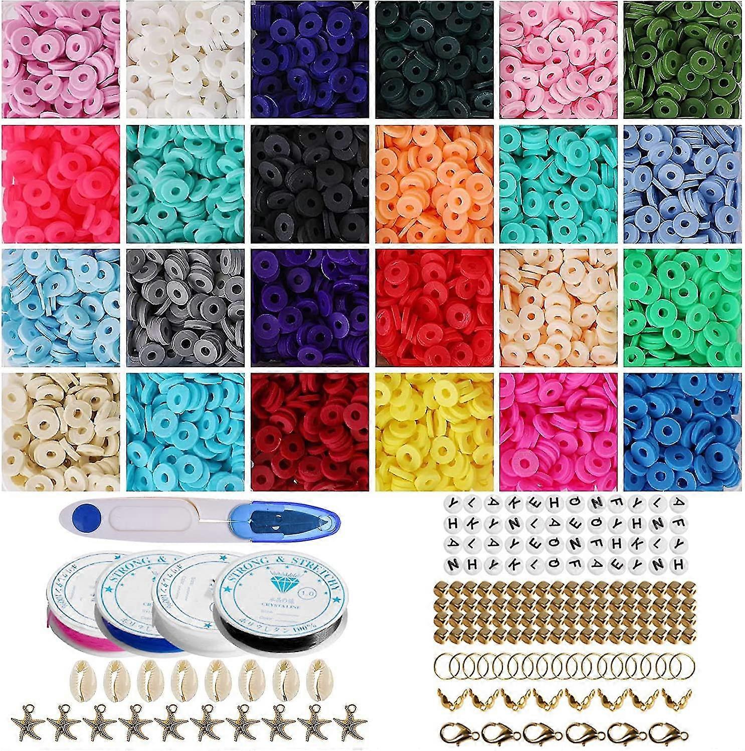 5200 Pcs Flat Beads 6mm 24 Colors Flat Round Polymer Clay Spacer Beads For Jewelry Making