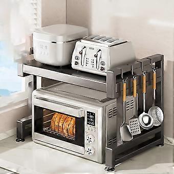55cm Multifunctional Kitchen Microwave Oven Top Rack Carbon Steel Countertop Storage Shelf with 6 Hooks