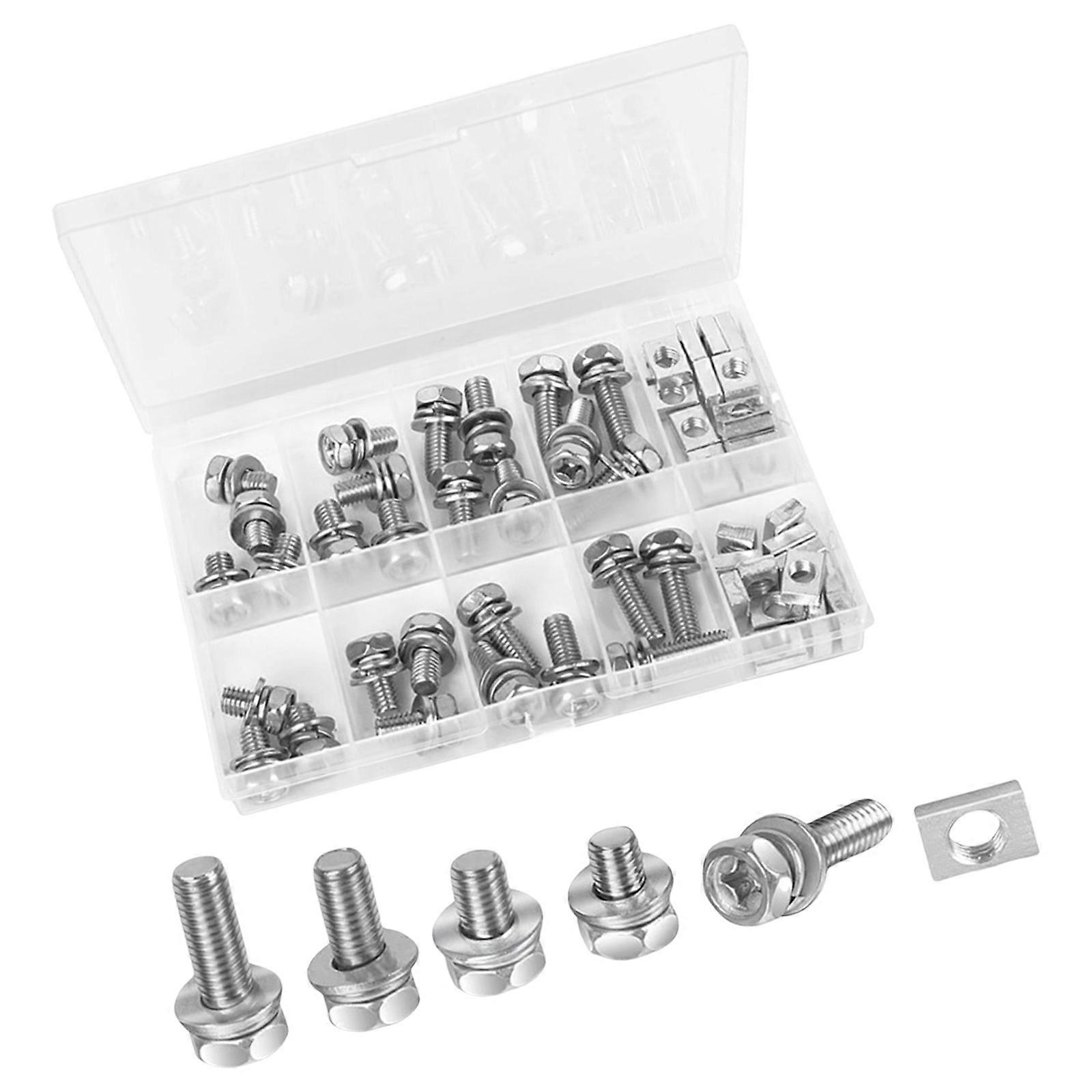 56pcs Machine Screws & Hex Nuts with Washers Metal Flange Screws & Nuts with Storage Box for Versatile Application Multicolor