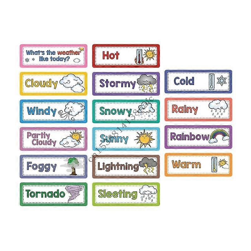 594F 16Sheet Weather Themed Word Cards Weather Teaching Flashcards Kid Early Learning Card Classroom Language Teaching Aid