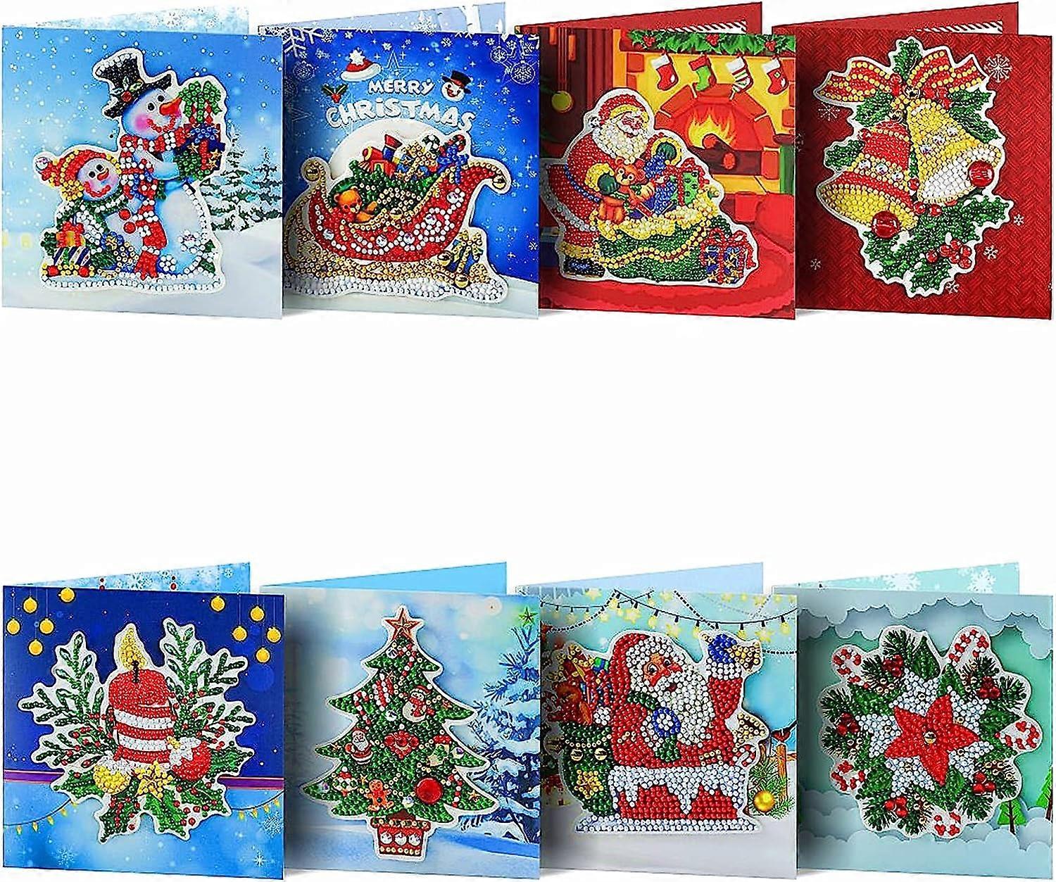 5D DIY Diamond Painting Greeting Cards for Adults Christmas Series Round Drill Crystal Art Craft Paint by Number Kits Gift Friends8pcs)