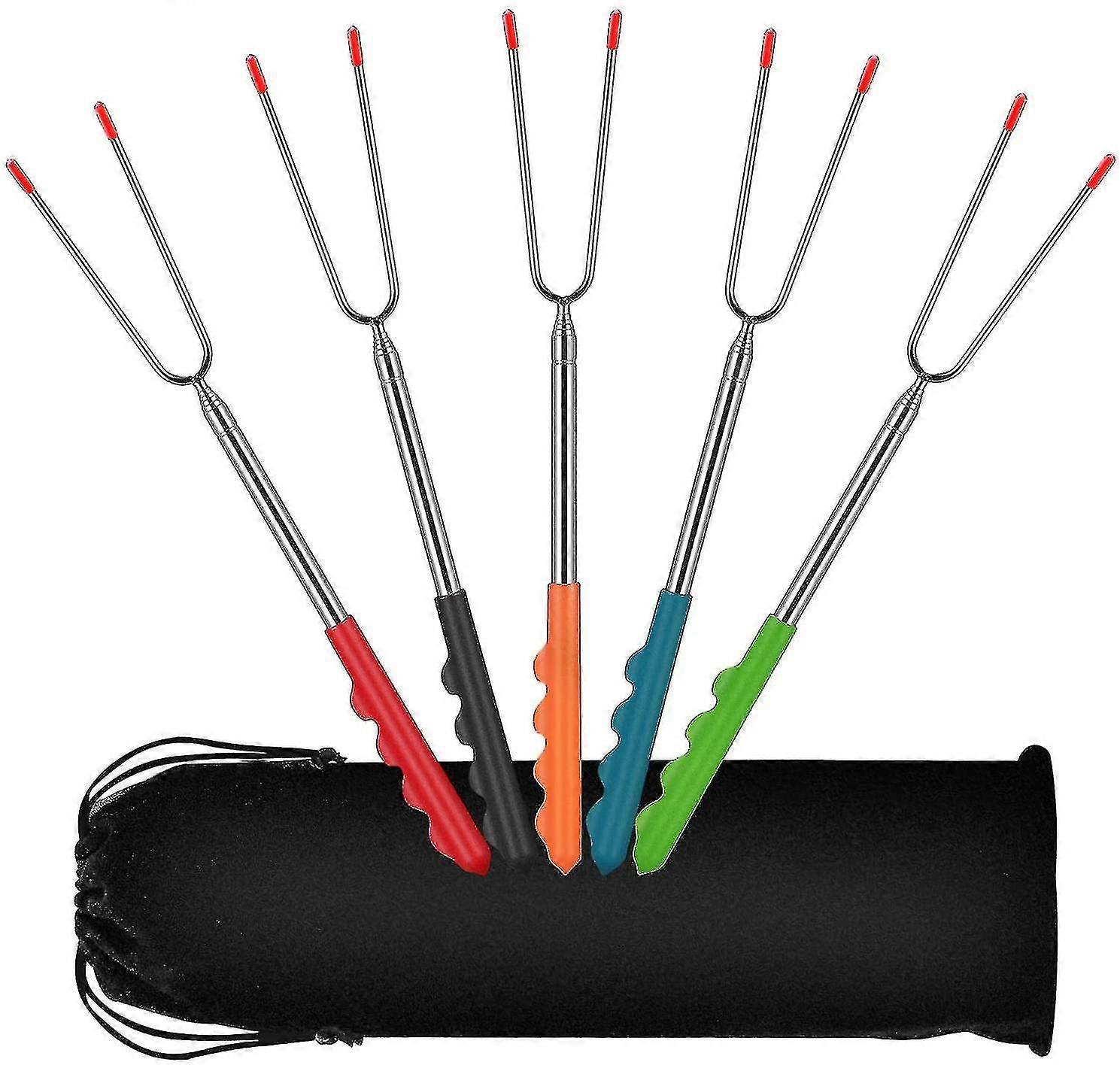 5pcs Stainless Steel 32cm 115cm,bbq Skewer Bbq Campfire Skewers Bbq Cutlery Bbq Skewers With Rubber Handle And Carry Bag