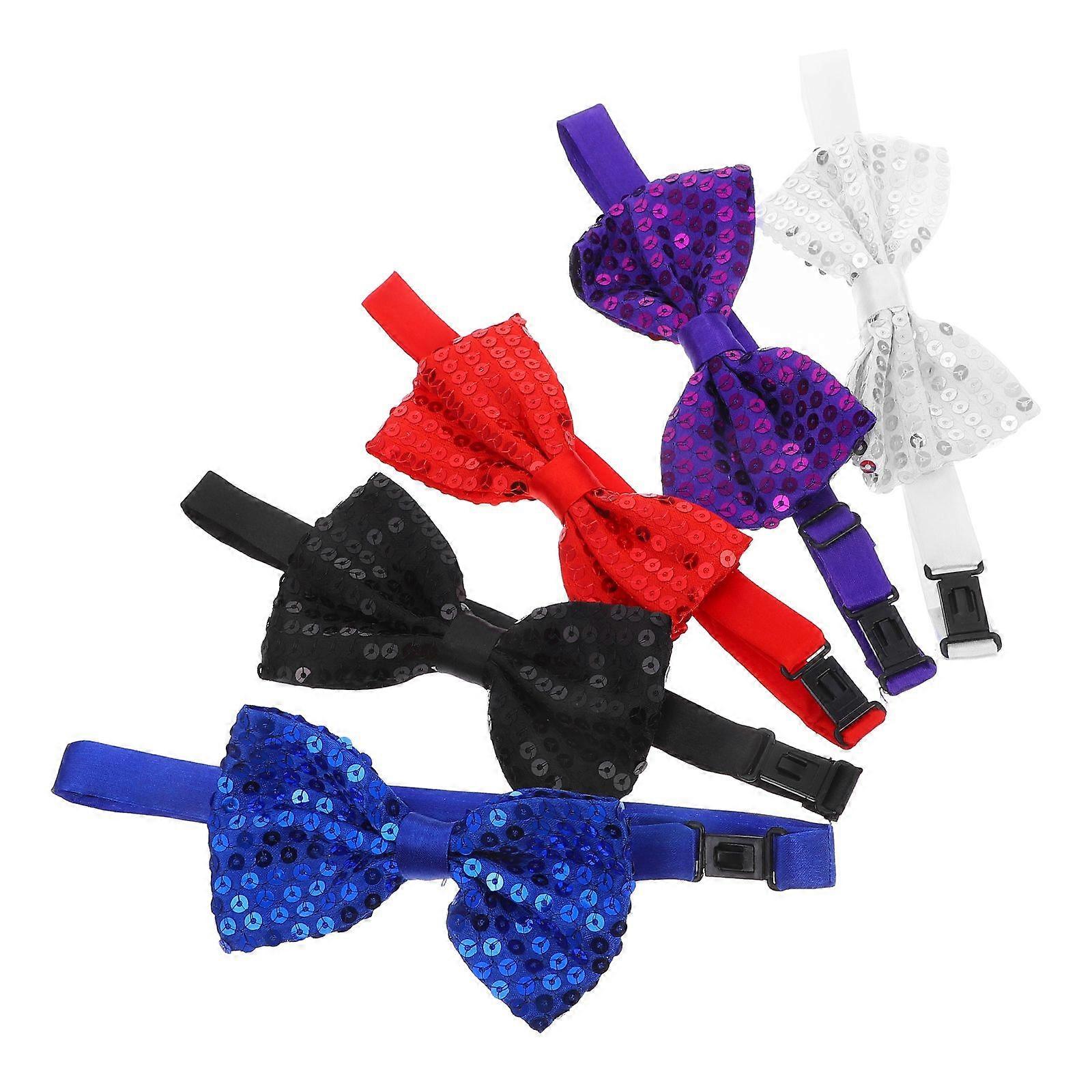 5PCS Sequin Collar Designed Bow Tie Creative Clothes Decoration Party Accessory for Men Women (Red, Purple, Blue, Black, Sliver)