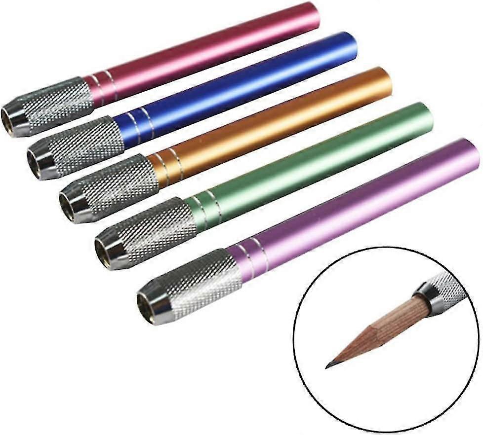5pcs Per Set Assorted Color Adjustable Aluminum Convenient Pencil Extender Holder School Hobby Art Writing Tools Pencil Extender Length Extension Hold
