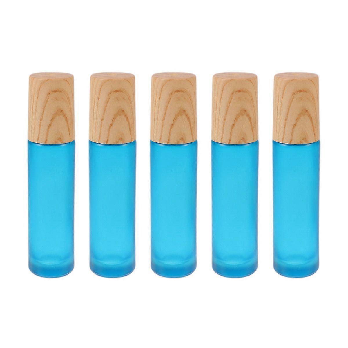 5pcs 10ml Wooden Lid Bottle Mini Glass Bottles Empty Smalll Bottles Portable Perfume Storage Container for Home Travel (Blue)