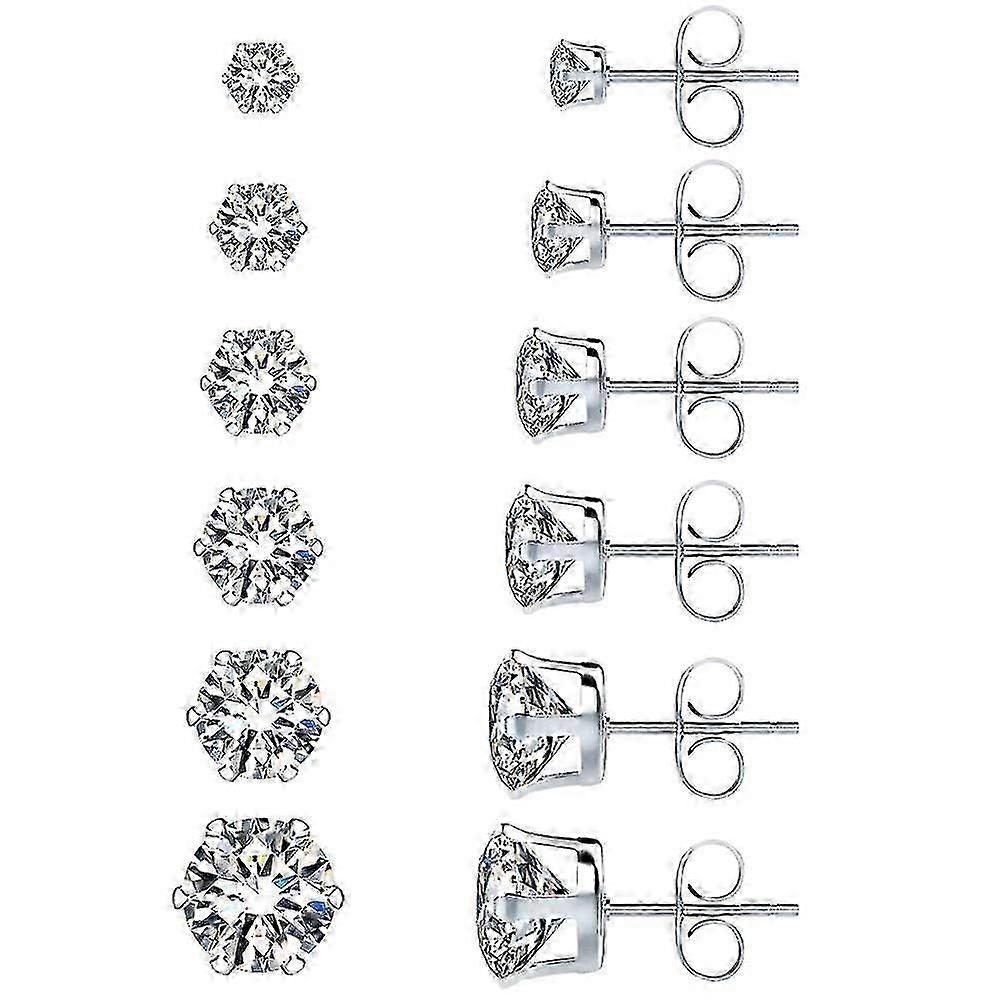 6 Pairs Stainless Steel Stud Earrings Set Hypoallergenic Cubic Zirconia 14k White Gold 316l Cz Earrings