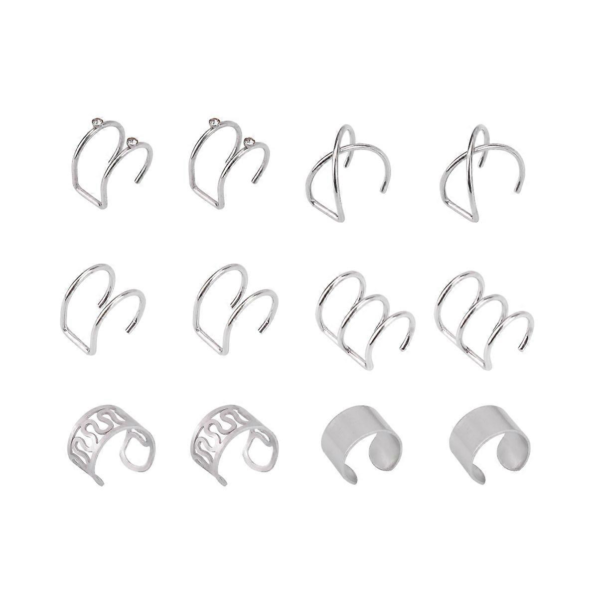 6 Pairs Metal Ear Clips for Men Women Non Piercing Ear Cuff, Steel Color, Simple Stylish Design for Everyday Wear, Party & Wedding