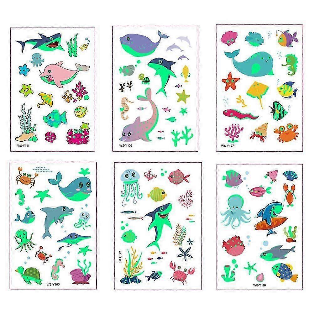6 Sheets Ocean Theme Temporary Tattoos Children Waterproof Luminous Stickers