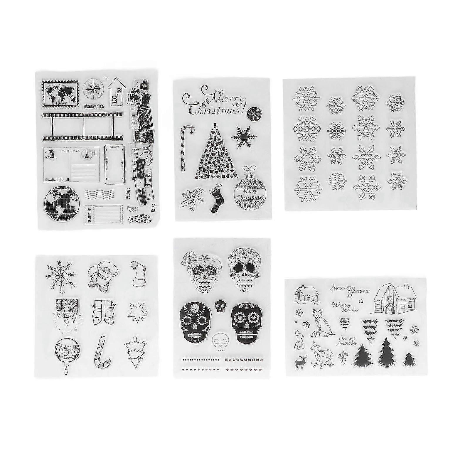 6 Sheets Clear Stamps Couple Skull Map Travel Christmas Decoration Pattern DIY Transparent Stamps for Card Making Decoration