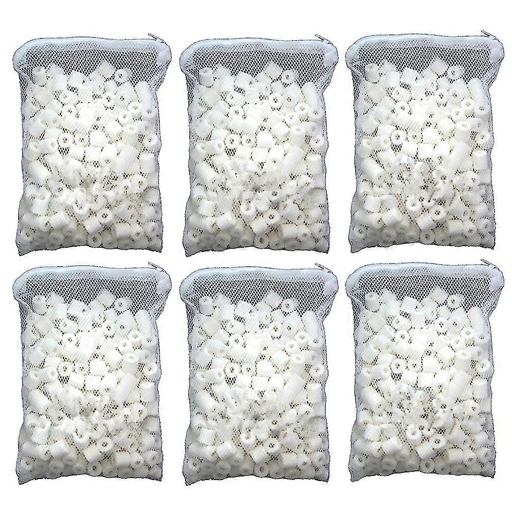 6 Packs Bio Porous Ceramic Rings With Mesh Bag Zipper For Pond Aquarium Canister Filter Fish Tank Filter Media (250g Each Pack)