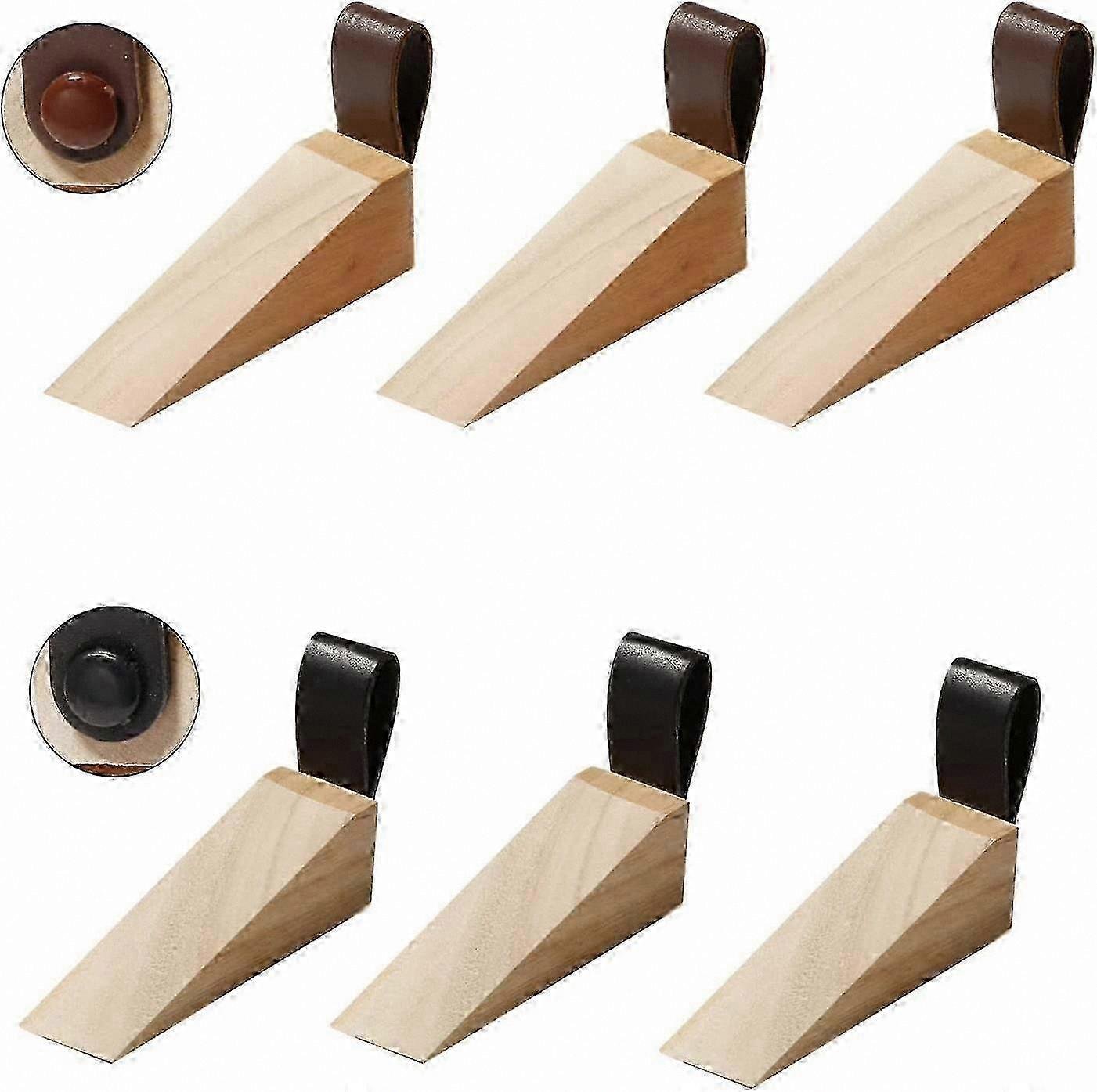 6 Pack Door Stoppers with Leather Buckle for Glass and Wooden Doors, Black and Brown Floor Protectors