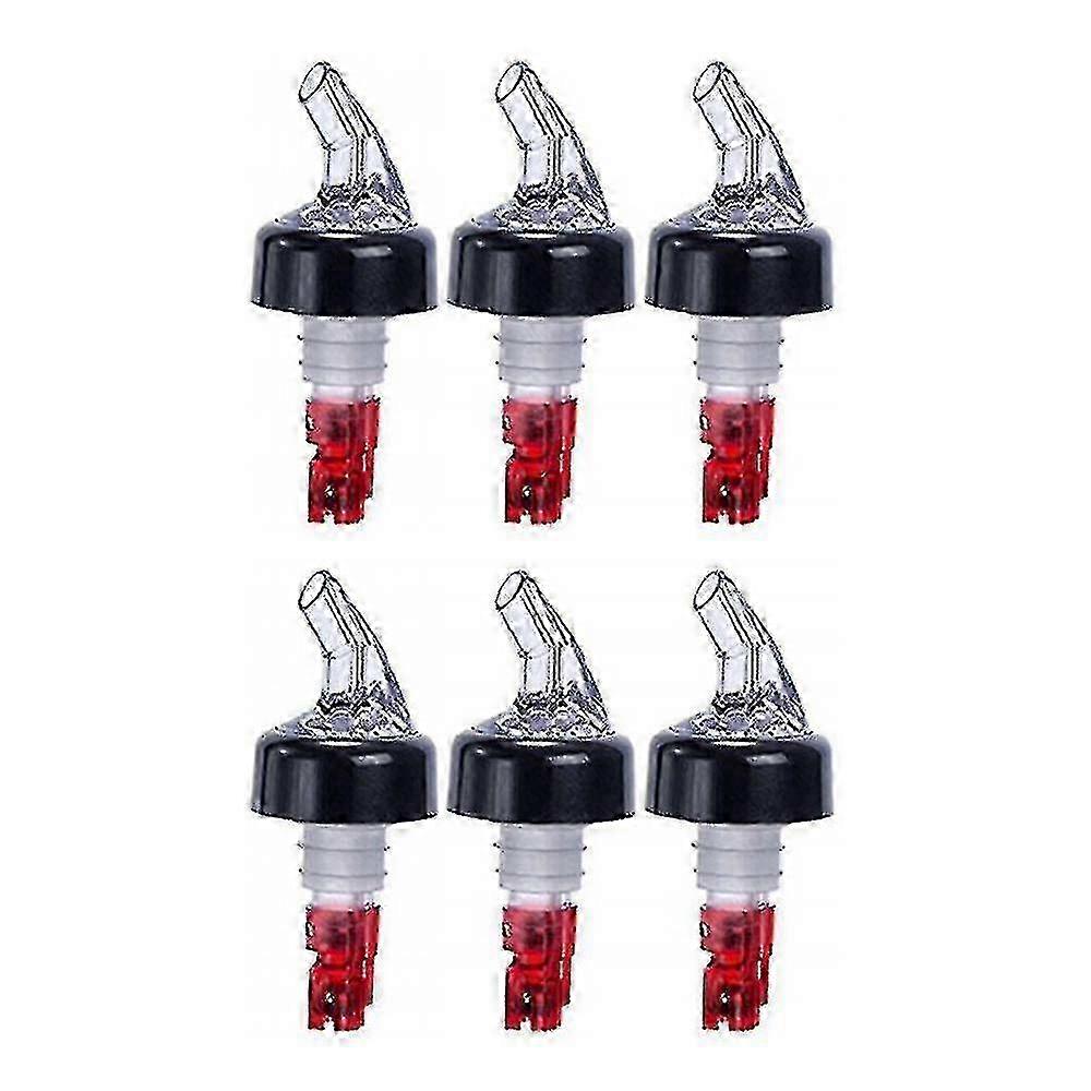 6-Pack Clear 1 Oz Liquor Pourers with Red Tip & Black Ring - Precision Spouts for Bar Use