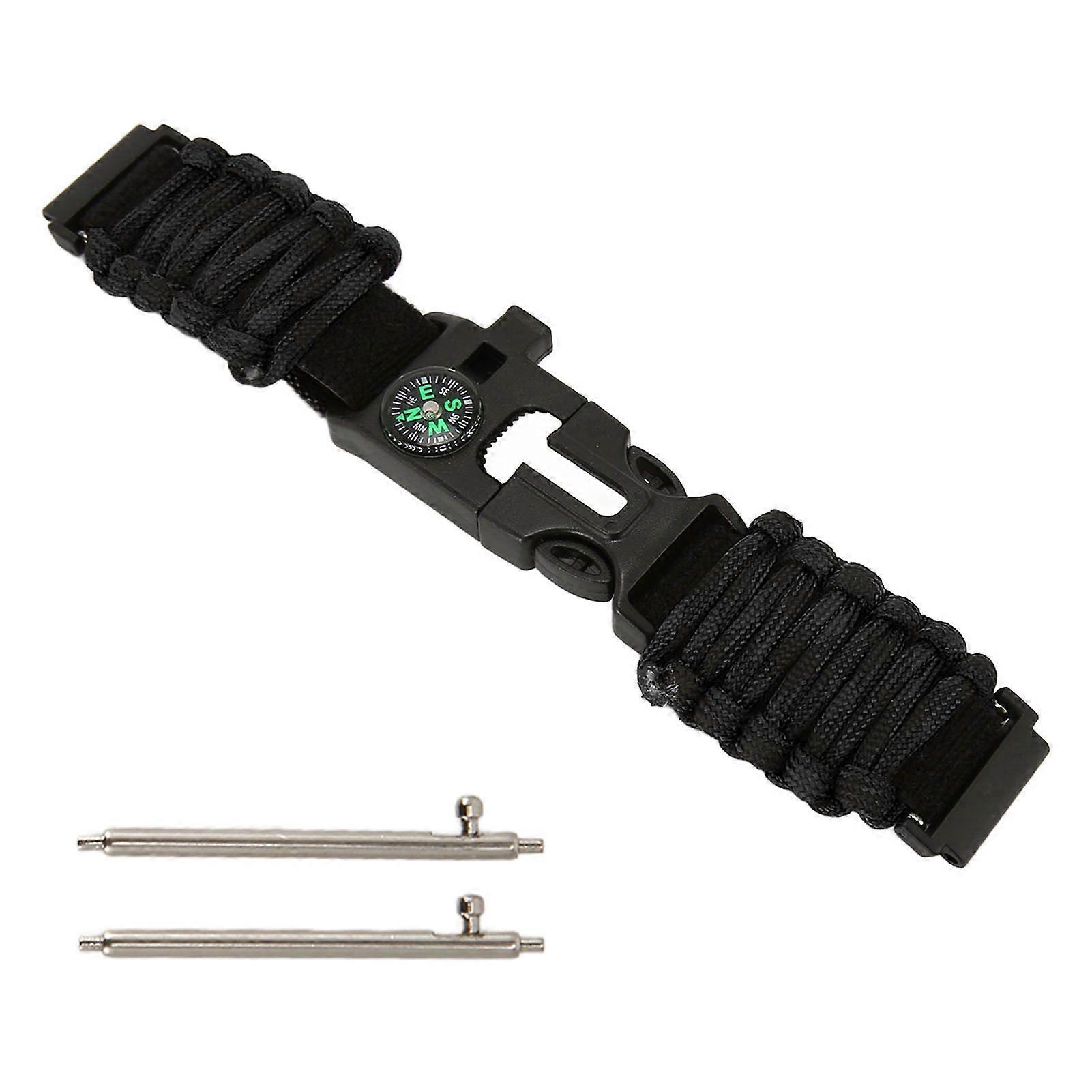 6 in 1 Paracord Bracelet Watch Band 22mm Buckle with Fire Starter Compass Whistle Fit for Huami Black