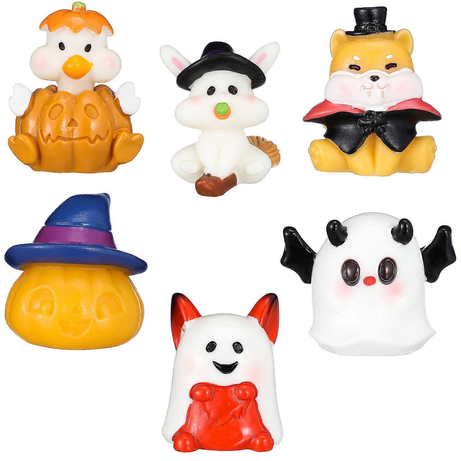 6Pcs Resin Crafts Halloween Ornaments Featuring Ghost Hat And Pumpkin For Decorative Miniature Gardens In Various Celebrations