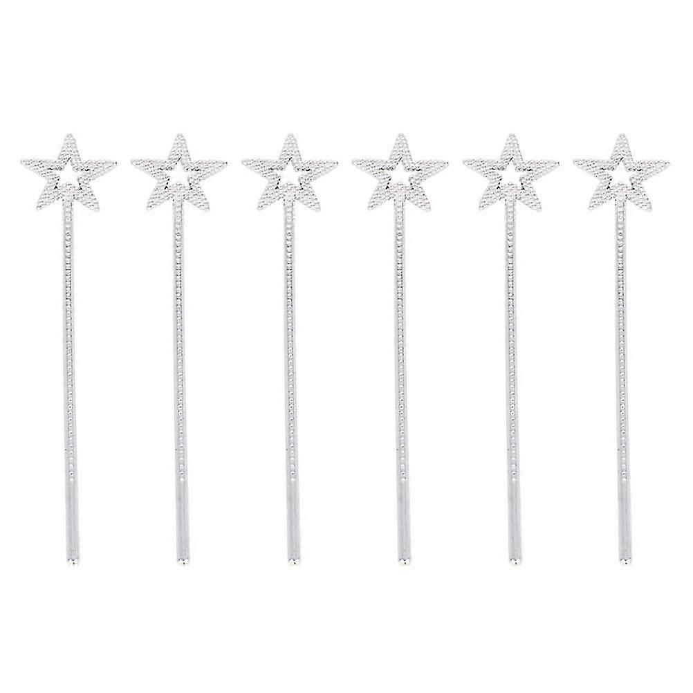 6pcs Silver Plastic Wands Star Pentagram Design Angel Fairy Stick For Girls Birthday Party Cosplay