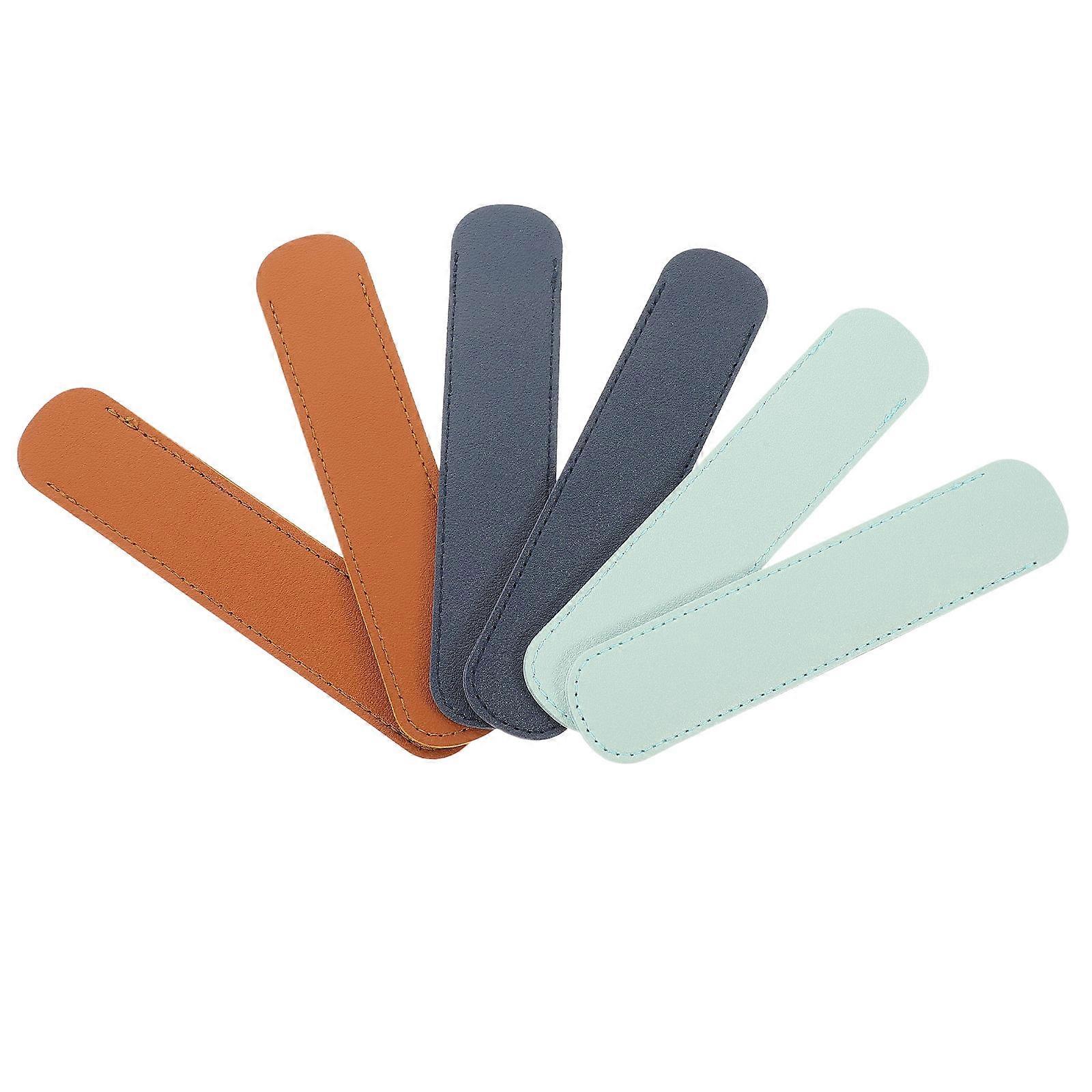 6pcs Pen Pouch Soft PU Single Pen Holder for Light Blue & Dark Brown Pencil Case Lightweight Portable Organizer