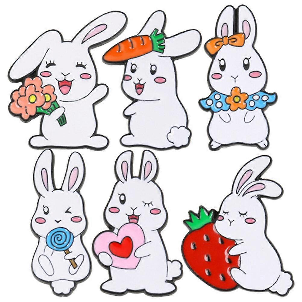 6pcs Cartoon Animal Brooches Rabbit Designs Brooch Pin Clothes Lapel Pin