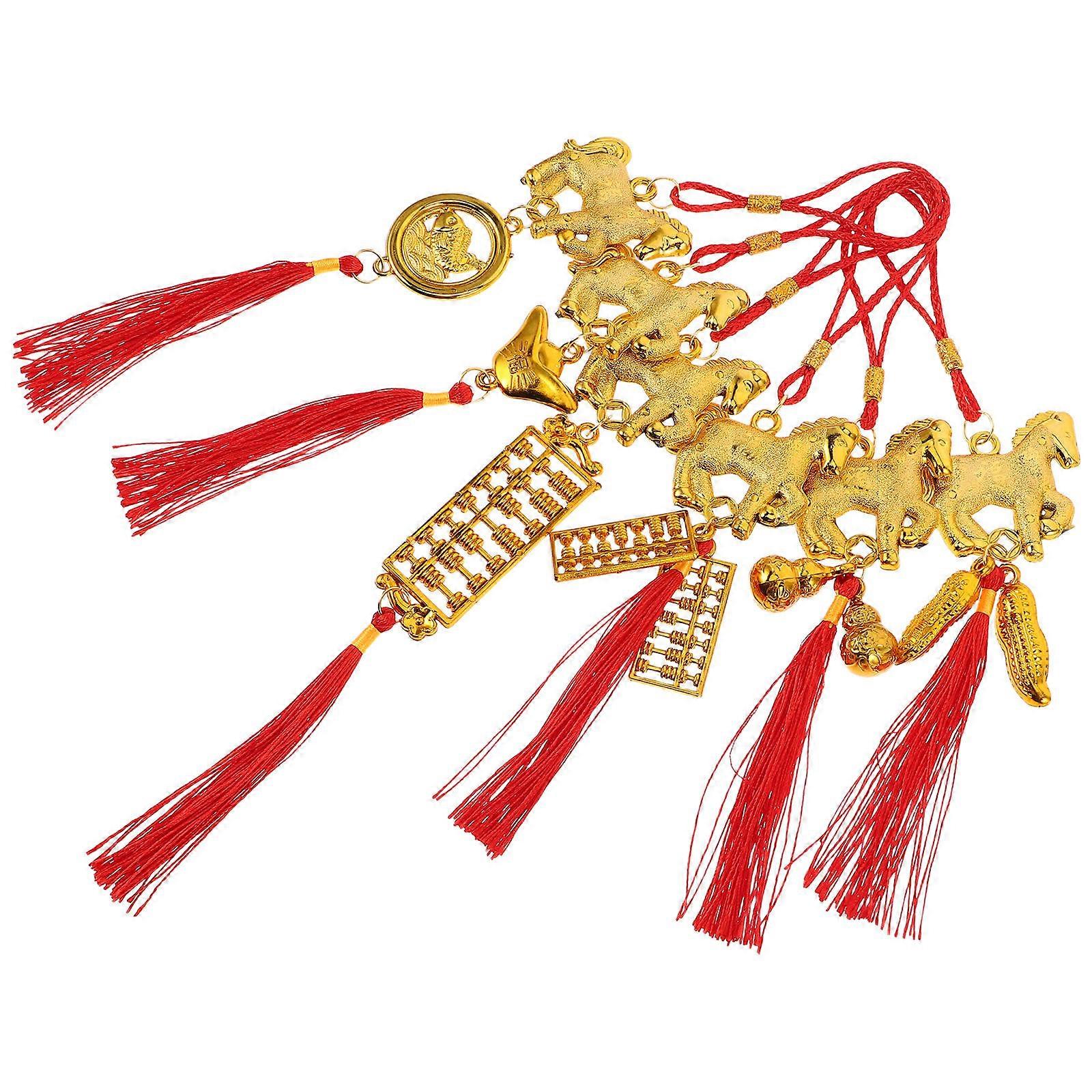6pcs Red Tassel Pendants for Chinese New Year Decorations, Lucky Horse Year Ornaments for Home Office Spring Festival Hanging Decor